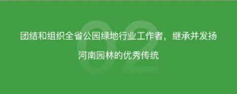 协会宗旨:遵守宪法、法律、法规和国家有关政策,践行***核心价值观,遵守社会道德风尚。团结和组织全省公园绿地行业工作者,继承并发扬河南园林的**传统,推进全省城镇化建设和生态文明建设,为构建***和谐社会、美丽河南做出贡献。